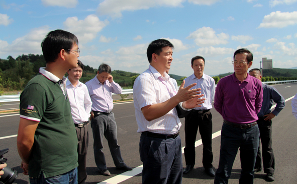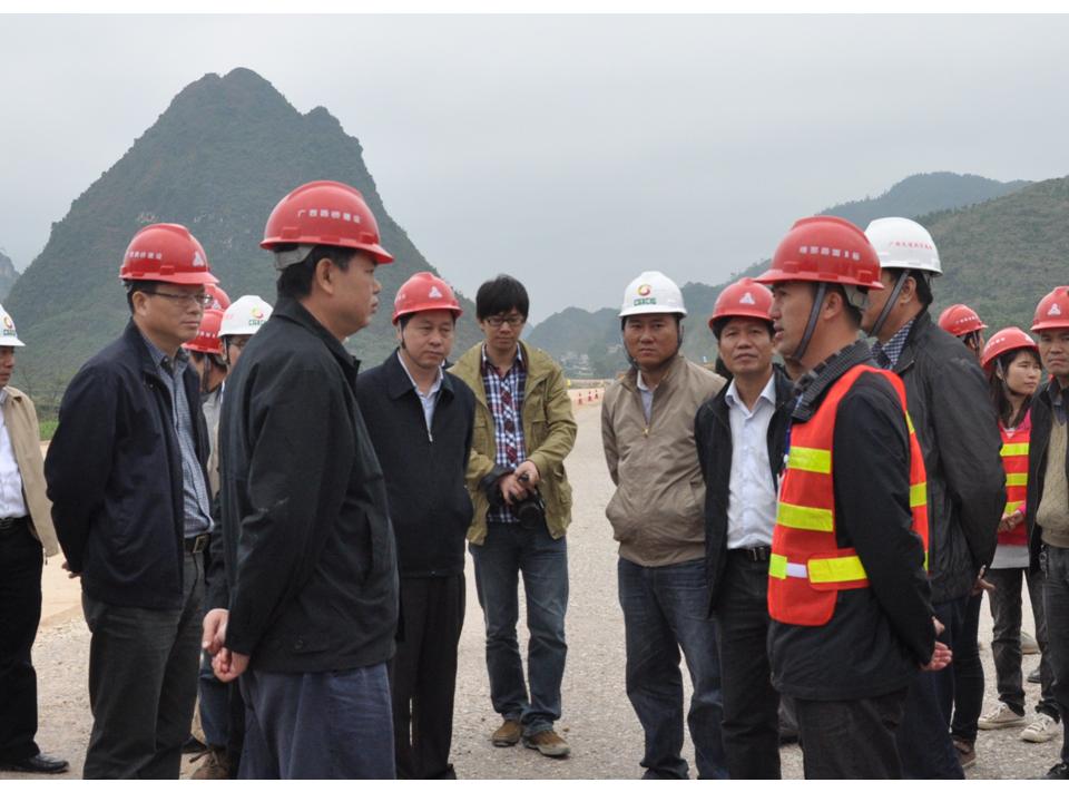 11月22日至23日,自治区交通运输厅厅长潘巍、副厅长梁毅分别莅临广西路建公司靖那路、钦崇路、玉铁路等项目检查调研,了解项目旱季施工情况,亲切慰问奋战在施工一线的广大员工,要求各项目把握好有利时机,坚决打赢旱季攻坚战,以优异的成绩促进交通建设发展。