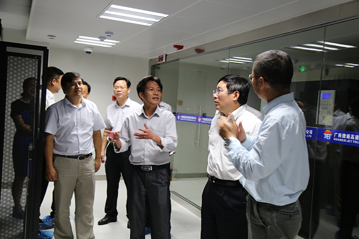 签约仪式结束后,与会的各位领导共同参观了我集团公司控股企业——广西捷通公司ETC中心机房,并听取了技术人员对中心系统建设情况、设备安装使用情况、机房运转流程、技术支持、监控及操作、消防通道等情况的汇报。