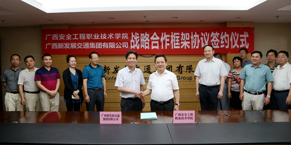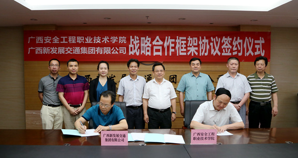签约仪式由集团公司党委书记、董事长朱坚和主持,他说,集团公司具有行业全覆盖,专业领域齐全,产业链完整的优势,具备大型工程项目的全过程运作综合实力。安全生产工作贯穿集团公司整个产业链,是集团公司各项工作的重中之重。为深入宣传贯彻党中央、国务院关于加强安全生产工作的系列决策部署和重要指示精神,加强集团公司安全生产工作的综合实力,双方充分发挥各自领域的优势,开展全方位的资源共享和校企合作前景广阔、大有可为,值得双方共同期待和推进。集团公司将认真履行职责,发挥自身优势,积极主动地参与广西安全工程职业技术学院的各项合作,为推动各自在安全生产工作的推广、实践、渗透作出应有贡献。