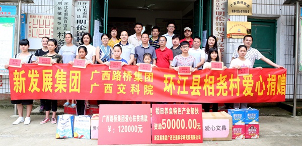 去年,新发展集团总部和直属各企业员工踊跃捐款,筹集爱心款项33万元。其中,明伦镇相尧村建设“农村书屋”,设立“爱心助学基金会”帮助百余名贫困山区学子读书圆梦,以实际行动援助扶贫村,力争实现“扶贫先扶智”的目标。转眼已是2017年,美丽的象牙塔令人憧憬,但仍有许多优秀学子正在为入学费用发愁,甚至因为家庭困难而错失升学机会,为将爱心延续,扶贫后援单位广西路桥集团积极发动广大员工继续为相尧村贫困学子募集爱心捐款,共筹集到捐款共计12万元,成为“爱心助学基金会”第二笔爱心基金。今年,基金会将资助相尧村120余名贫困学子每人1000元左右,帮助其顺利完成学业。为资助该村稻田养鱼扶持项目,广西交通科学研究院有限公司捐赠5万元,并成立特色产业发展基金。