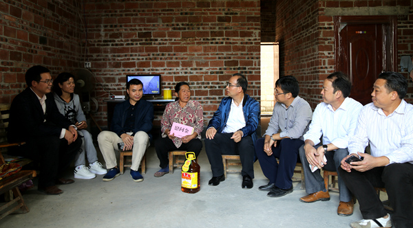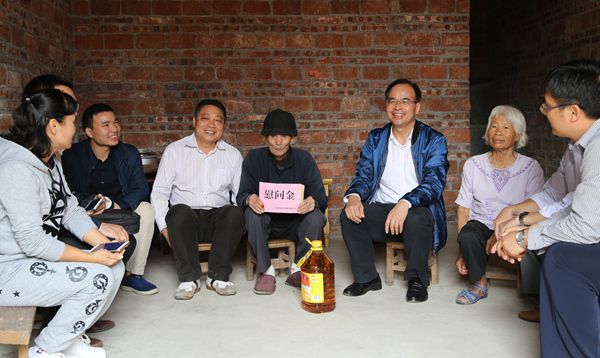10月25日,集团公司副总经理李德智、办公室主任磨立堂,工程院党总支部书记、院长谢登禹以及合山市人大常委会主任蓝宾北一行到集团公司扶贫联系来宾合山市河里镇河里村开展精准扶贫日走访慰问活动。通过开展座谈交流,进一步掌握河里村脱贫攻坚进展情况,并为下一步脱贫工作提出建议与对策。同时,还来到河里村韦启助、罗耀权、曾有姣、韦迁池等贫困户的家里,了解生产生活情况,并送上了慰问金和慰问品。