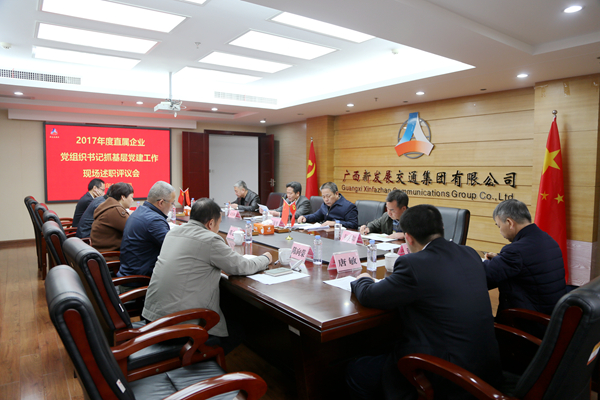 1月12日,集体公司召开2017年度直属企业党组织书记抓基层党建工作现场述职评议会。集团公司党委书记朱坚和,党委副书记张友坐、翁科,纪委书记韦庆和以及自治区国有企业监事会代表出席会议。