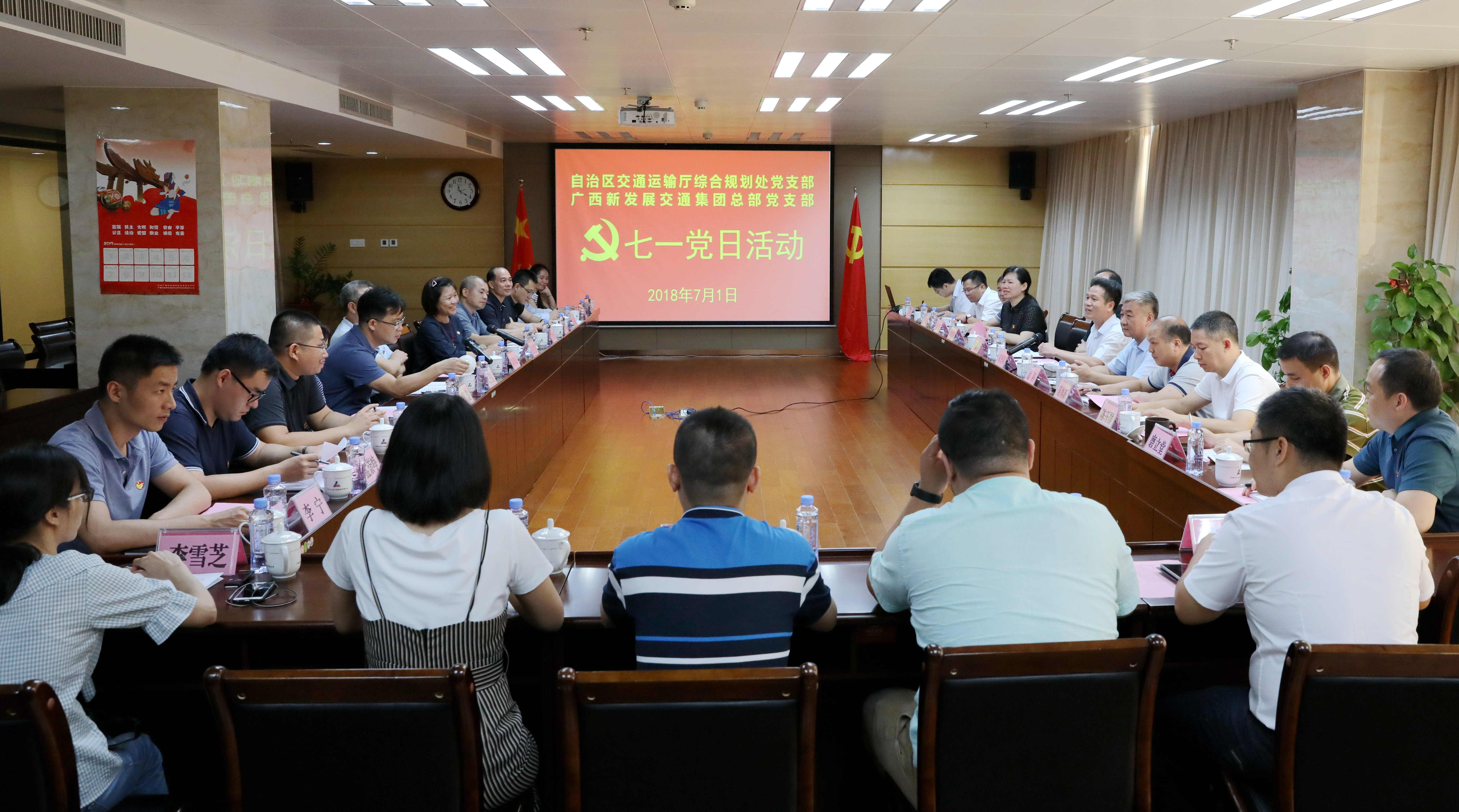 双方党员通过交流发言,共同回顾了中国共产党成立97年来艰苦卓绝的奋斗历史和团结带领全国各族人民所取得举世瞩目的发展成就;共同感受到了我们比历史上任何时期都更接近中华民族伟大复兴的目标;共同认识到,广西交通人作为习近平总书记对广西发展提出“三大定位”目标的坚定实践者和开拓者,作为先行官,必须进一步强化责任感和使命感。活动中,双方党组织重点就县县通高速公路、路网项目、智慧交通项目等有关事项进行了深入探讨。