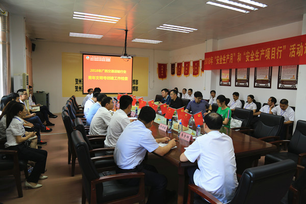 7月10日、19日,广西交通运输行业“青年文明号”检查组分别到贺巴高速钟昭指挥部、都巴指挥部进行 “青年文明号”创建检查工作。